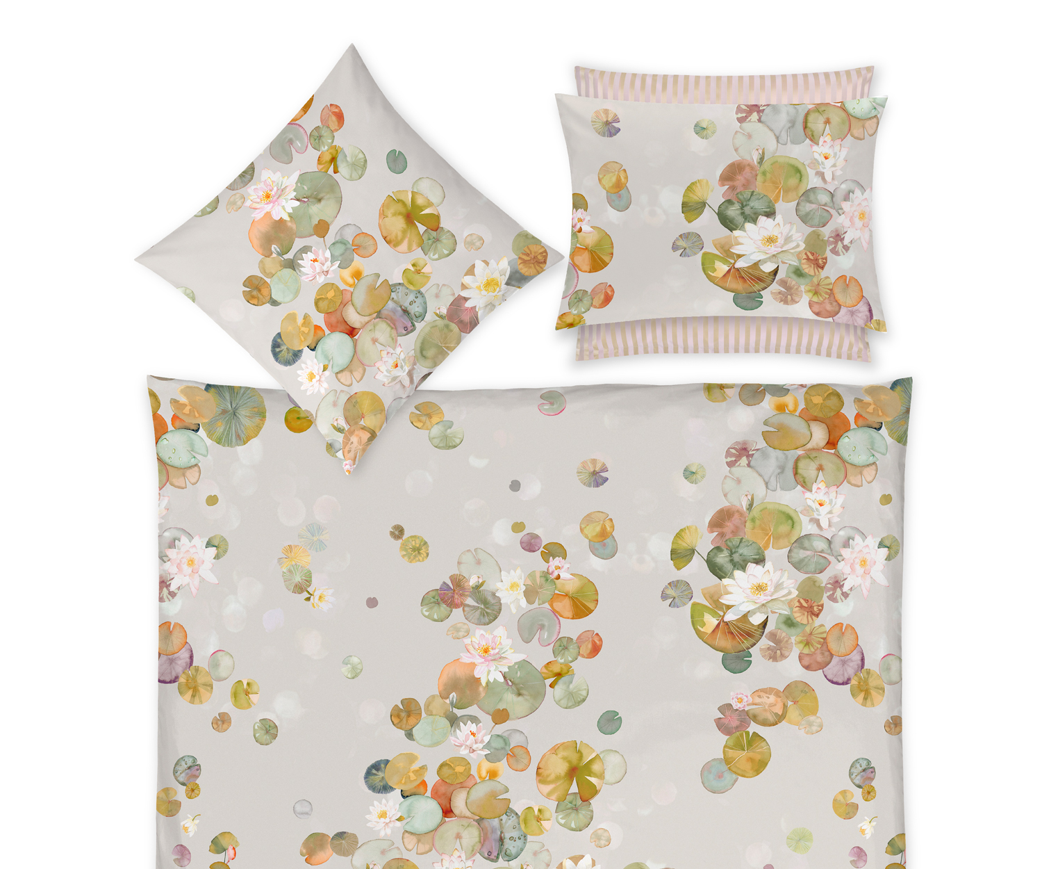Verleihen Sie Ihrem Schlafzimmer eine Aura von stilvoller Leichtigkeit mit der exklusiven Fischbacher Bettwäsche NINFEA. Inspiriert von der zarten Schönheit blühender Seerosen, verbindet dieses edle Design harmonische Farbnuancen mit feinen, eleganten Mustern – perfekt für ein anspruchsvolles und ruhiges Wohnambiente.
