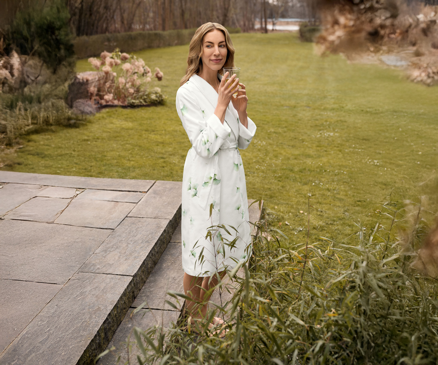 Starten Sie gelassen in den Tag oder lassen Sie ihn entspannt ausklingen – mit dem AIKO Morgenmantel von Schlossberg Switzerland. Inspiriert vom Charme eines Zen-Gartens schenkt er Ihnen zu jeder Stunde genau die richtige Balance zwischen Stil und Geborgenheit.